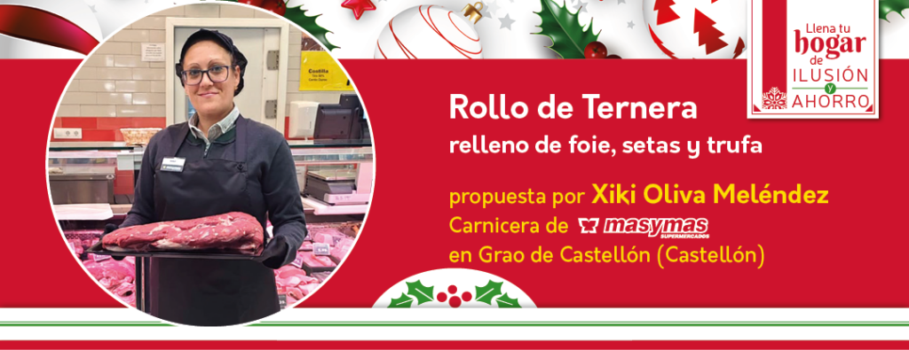 Xiki Oliva Meléndez, carnicera en nuestro masymas Supermercado del Grao de Castellón (Castellón), ubicado en Camino del Serradal 7, nos propone esta receta perfecta para sorprender: Rollo de Ternera relleno de Foie, Setas y Trufa.